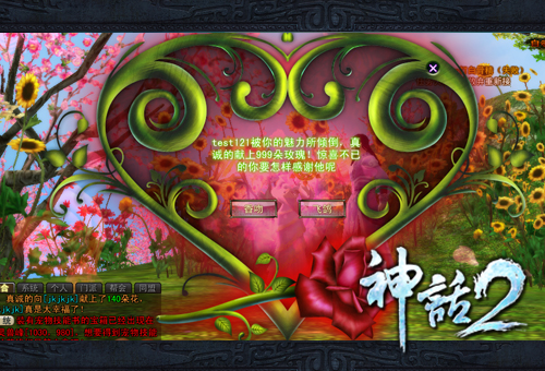 全息3D东方魔幻网游《神话》为了将这份浓情蜜意献给玩家爱侣,不至突兀纷飞而神伤,推出了“为爱送花”活动,并将持续开展到本月30日。甜言蜜语未表达透彻的玩家们,未收到花与爱意的男纸们没纸们,让爱的芬芳四溢流淌吧。到《神话》游戏里,给你亲爱的TA,给你关注的好友赠送鲜花。香吻中,将让你们的情意更进一层,尽情享受七夕的小高潮!