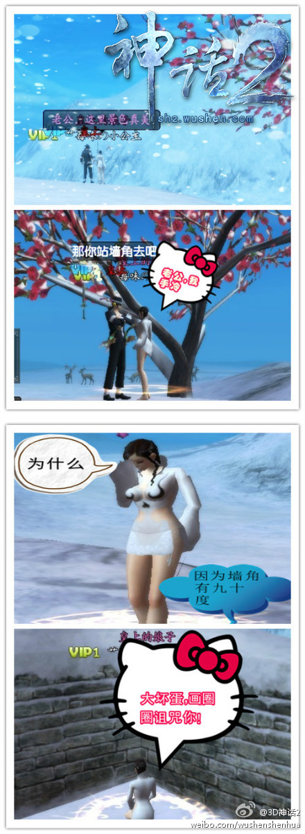 最能撒娇的妹纸应该是《神话》女玩家了,以众多美女著称的3D全息玄幻网游《神话》,看玩家如何演绎萌妹纸誓将耍赖进行到底的小可爱劲!被罚站墙角,还是这么可爱惹人爱怜,亲爱的们,怎么HOLD住哟?!