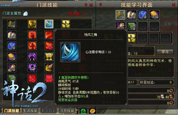 门派技能的修炼,自然也是有等级限制的。到属于自己的门派下修炼,更强的攻击力,更强更炫的技能出去也是很拉风的。