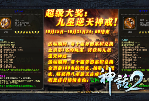 新资料片血战逆天谷震撼袭来,《神话》新浪、腾讯微博给力活动随之而来。转发得限量周边,元宝、筋斗云坐骑,关注有礼,《神话》,你的惊喜,从来都是这么多,这么狠!