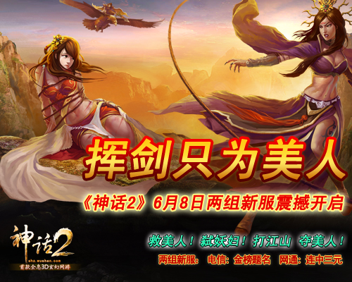 更多精彩,更多放送,尽请关注6月8日18时《神话2》两组新服。英雄力战天下,美人相伴。江山,美人,这里,一个都不缺!