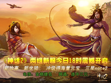 时间:2013年06月08日《神话2》今日18时两组新服同步启动。电信:金榜提名、网通:连中三元,霸气贴心吉祥的名字,契合结束的高考,是否有种时空穿越之感?古代科举完,章台游、樱桃宴。《神话2》将这份古典演绎到极致,更生出情海风波,萝莉与妖妇对决,妒海翻腾。新故事、新坐骑给力出马,超高福利,元宝、三星note2滚滚来。还等什么,战个痛快!