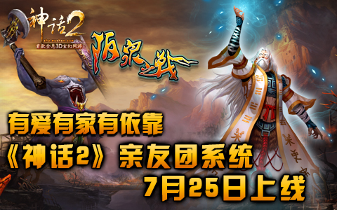 一直都是在荒漠中独自落寞,一直都是无聊的时候做做任务,做到疲惫吐老血了,也无人嘘寒问暖。有时会心血来潮加入几个队伍,来来往往,匆匆离散,那么亲近却又隔离。心,有那么一刻,伤到碎,碎成眼泪。多么想有一群温暖的神眼在周围,在身边,不为索取,只求在中间,却一度成为奢望。需要一个Family,需要像吸血鬼家族一样的族群,只为艰难困苦之外,可以回到属于我的家族去疗伤。。。这一切,只需等待《神话2》7月25日亲友团系统上线!