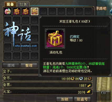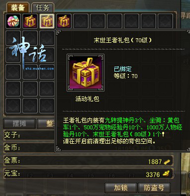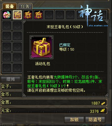 2、“末日王者礼包”领取条件:2011年7月1日之后注册, 2012年9月30日后未曾登录过游戏,并且满50级的玩家。