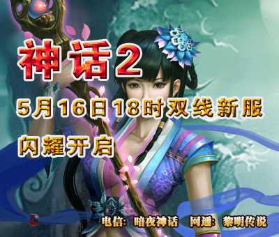 更多劲爆活动,请锁定5月16日18时,《神话2》两组新服激情引爆金秋,新服电信:“暗夜神话”、网通:“黎明传说”静候各位小伙伴儿们的组团加入!百万元宝让你拿到手软,赶紧来吧!